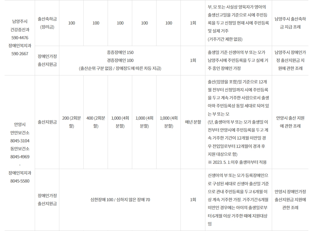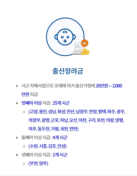 - 경기도 내 31개 시·군 모두 출산지원금 제도 운영