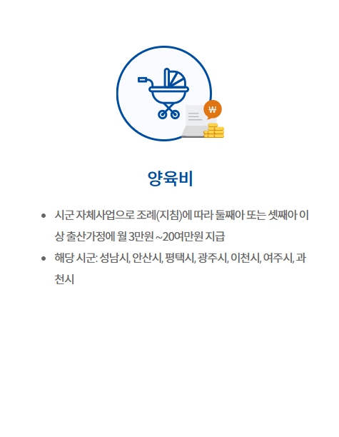 | 셋째 이상부터 지원 | 부천시, 양주시 등 | 100만~1,000만 원 |