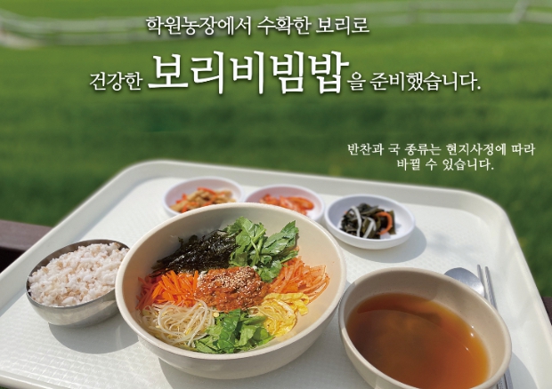 - 학원농장 식당: 지역 농산물로 만든 보리비빔밥, 메밀국수 등