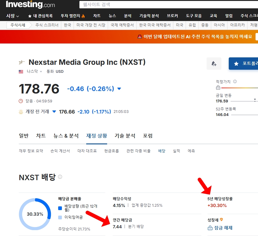 NXST는 미국 전역에 방송국, 뉴스네트워크, 웹사이트 등을 소유하고 있으며 방송을 통해 콘텐츠를 배포하는 기업입니다. 주가를 살펴보면 과거부터 현재까지 꾸준히 우상향 하는 걸 볼 수 있습니다.