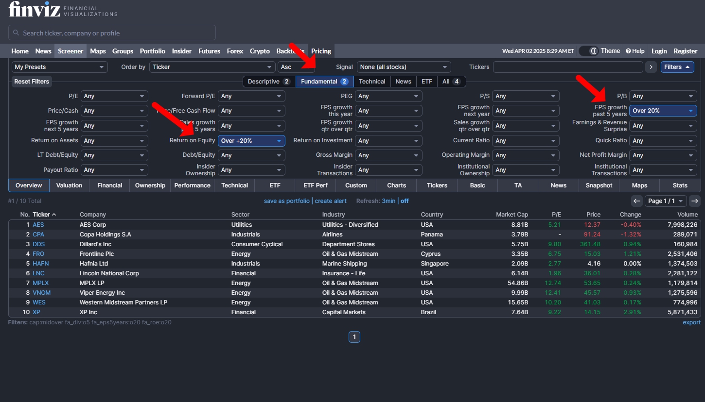 지난 5년간 주당순이익 증가율이 연 20% 이상인 배당 성장주만 선택합니다. - Market cap: Over $2 billion