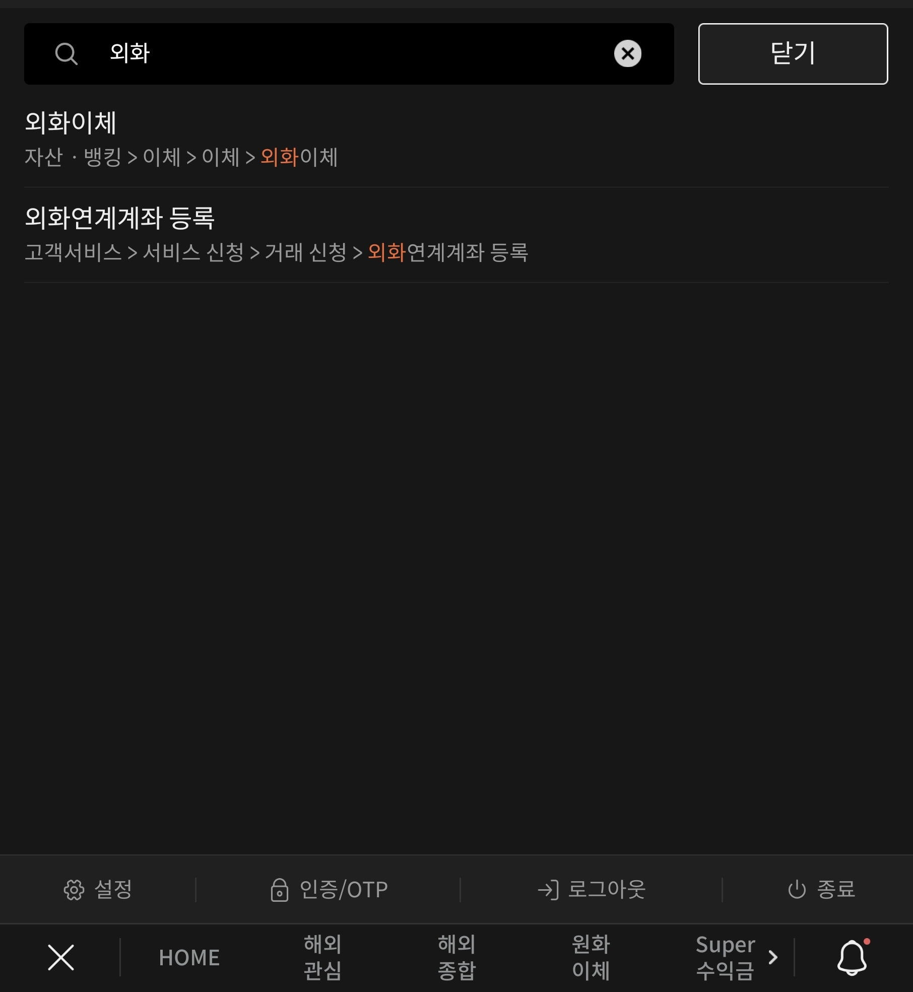 - 메뉴에서 '환전-외화이체/대체' 선택