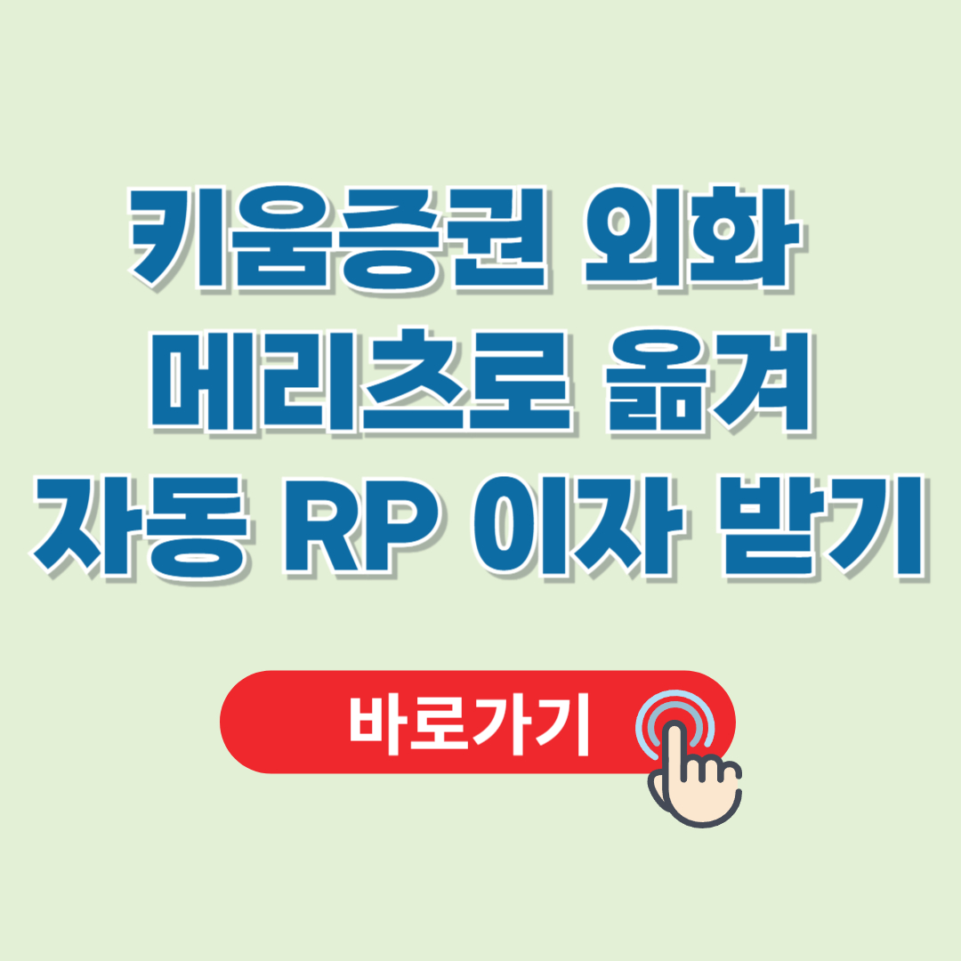 증권사 간 외화 이체 방법이 어렵고 복잡하다고 느껴시는 분들이 많은데 한번 알아 놓으면 쉽게 수수료 없이 외화이체가 가능하더라고요! 키움증권에서 메리츠증권으로 외화를 손쉽게 이체하는 방법을 알려드리니 자동 RP 서비스로 편한 이자 혜택 누려보세요!