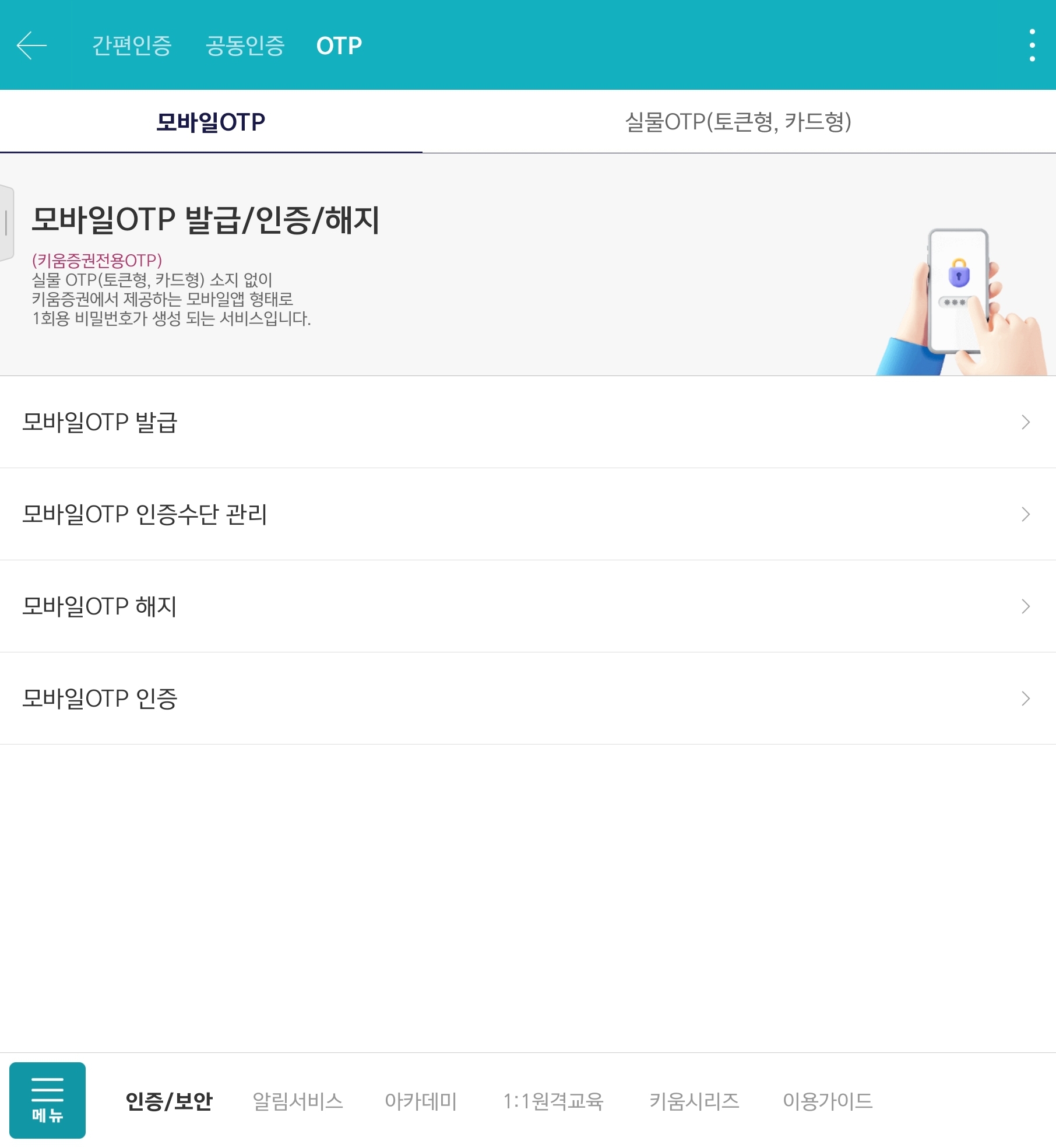 4. 키움증권 어플에서 모바일 OTP 발급하기