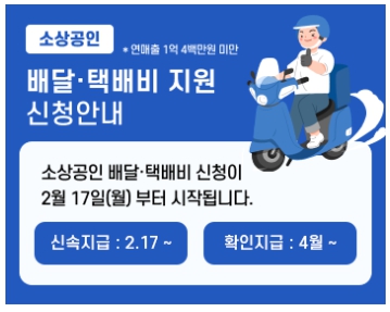 - 지원 대상: 배달 또는 택배 이용 실적 있는 소상공인